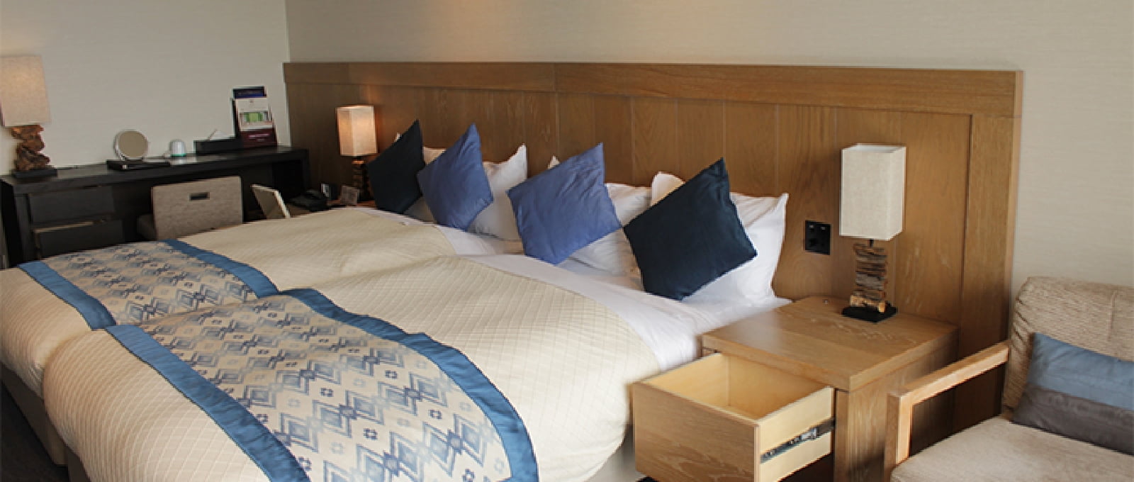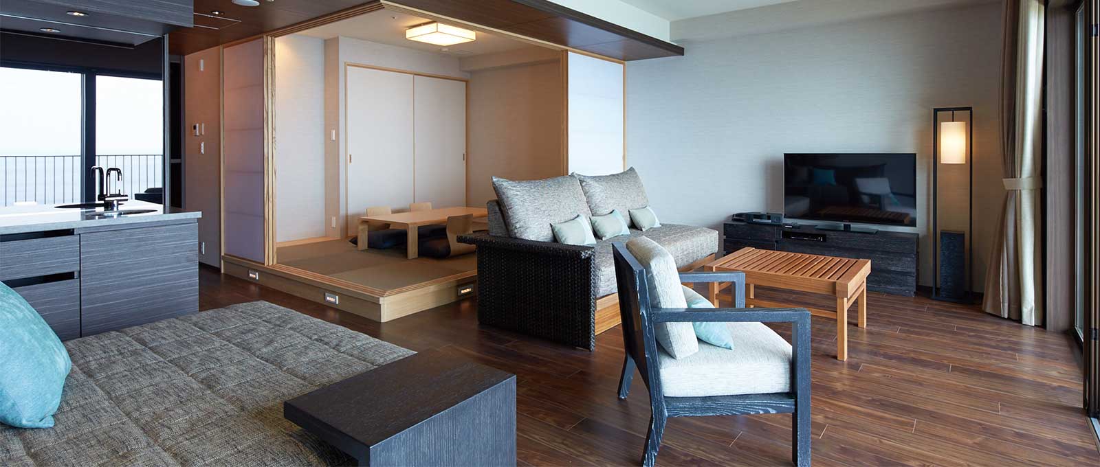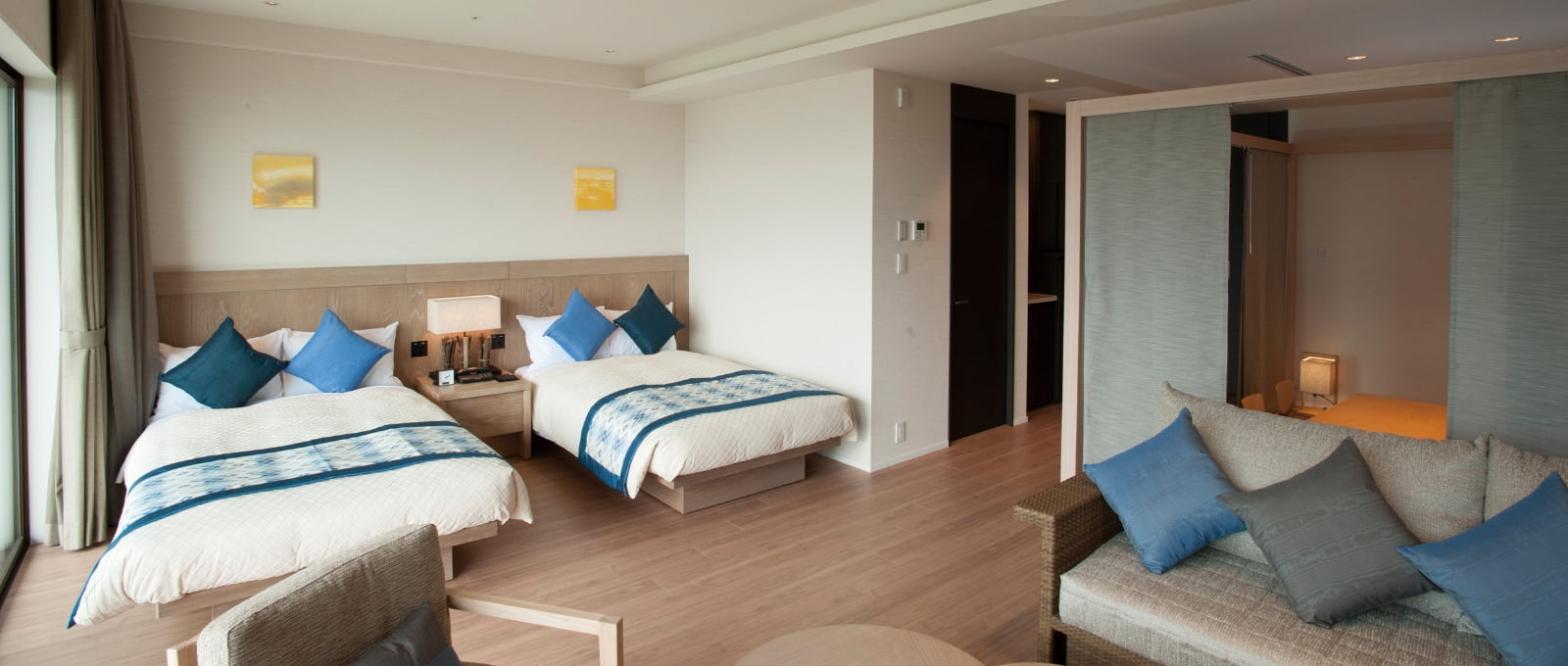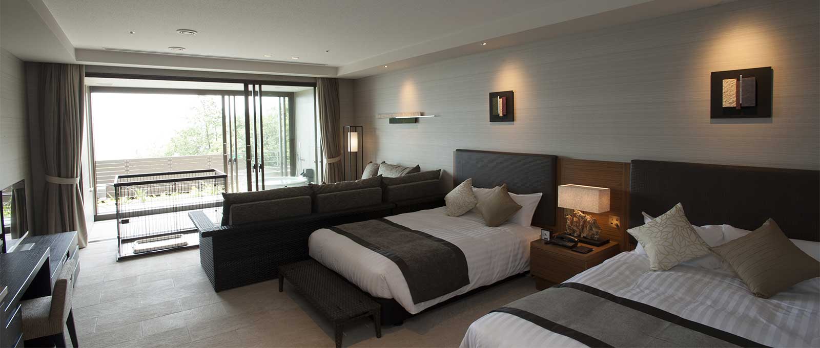 洋室や和洋室など豊富なバリエーションでご用意した、海と緑を望むゲストルーム。