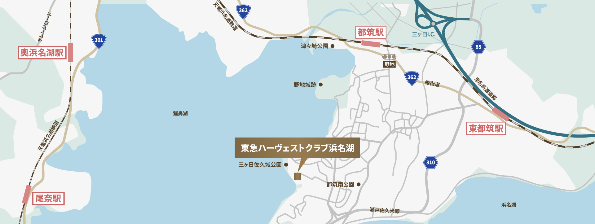 穏やかな湖畔に、約51万㎡のスケールで展開する<東急リゾートタウン浜名湖>内に佇む「東急ハーヴェストクラブ浜名湖」。