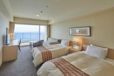 太平洋を望む全室オーシャンビューのゲストルーム。